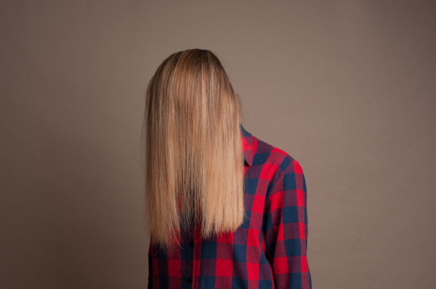 Девушка в клетчатой рубашке с волосами на лице
