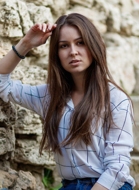 Девушка у каменной стены