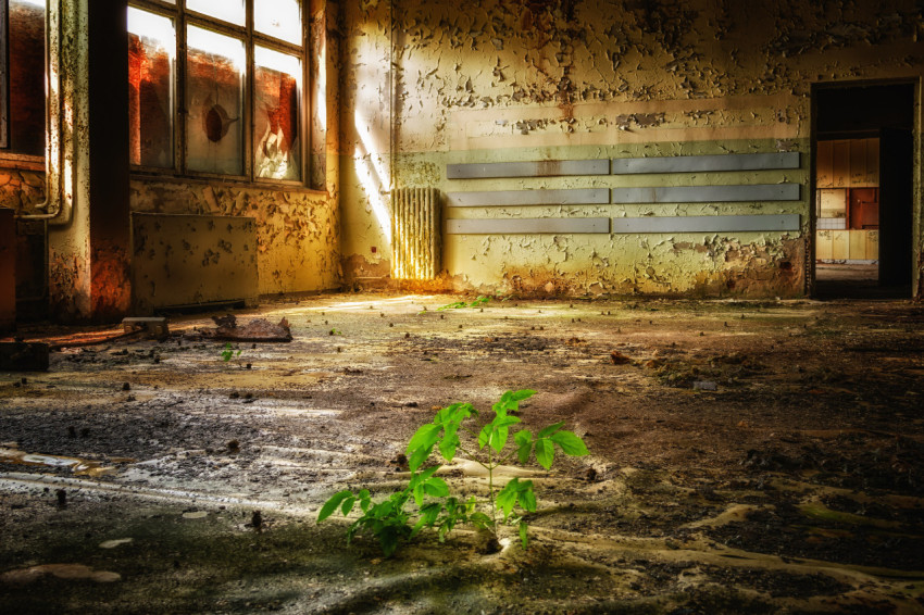 Росток дерева в заброшенном здании