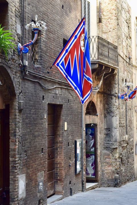 Флаг Сиены Италия на старинном кирпичном здании