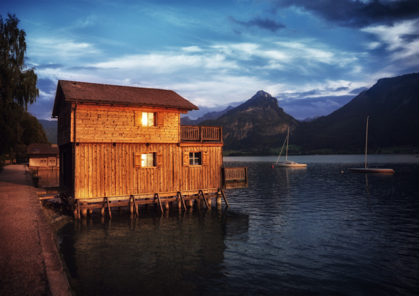 Домик на сваях на озере
