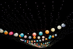 Уличная гирлянда разноцветная на фоне ночного неба