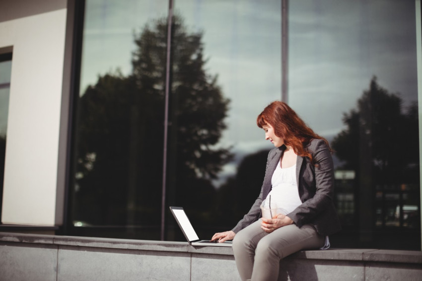 Девушка за ноутбуком на улице