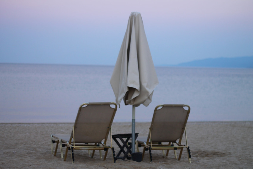 Два лежака и закрытый пляжный зонт