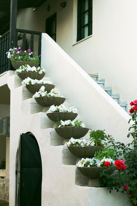 Клумбы с цветами на лестнице