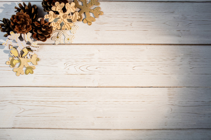 Шишки картонные снежинки на светлых деревянных досках