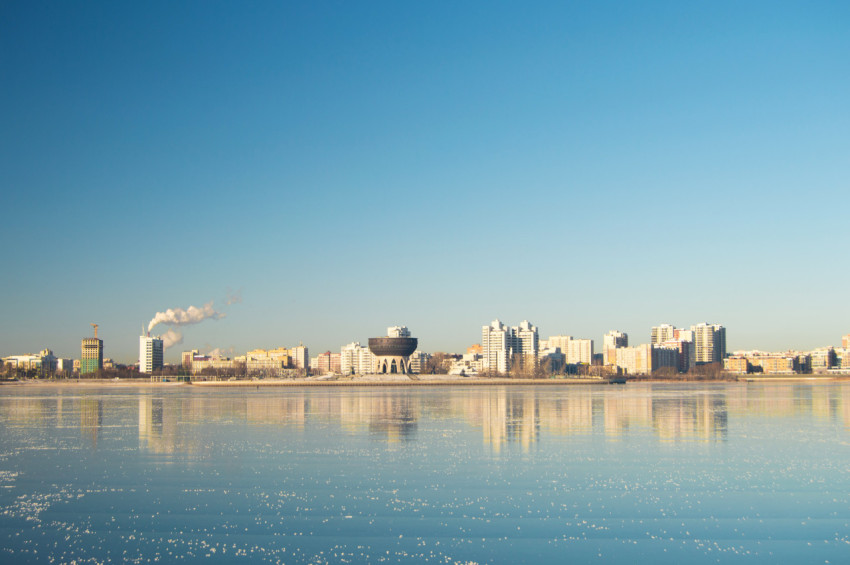 Пейзаж с воды на Кремлёвскую набережную в Казани