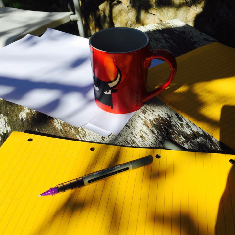 Красная кружка на листах бумаги